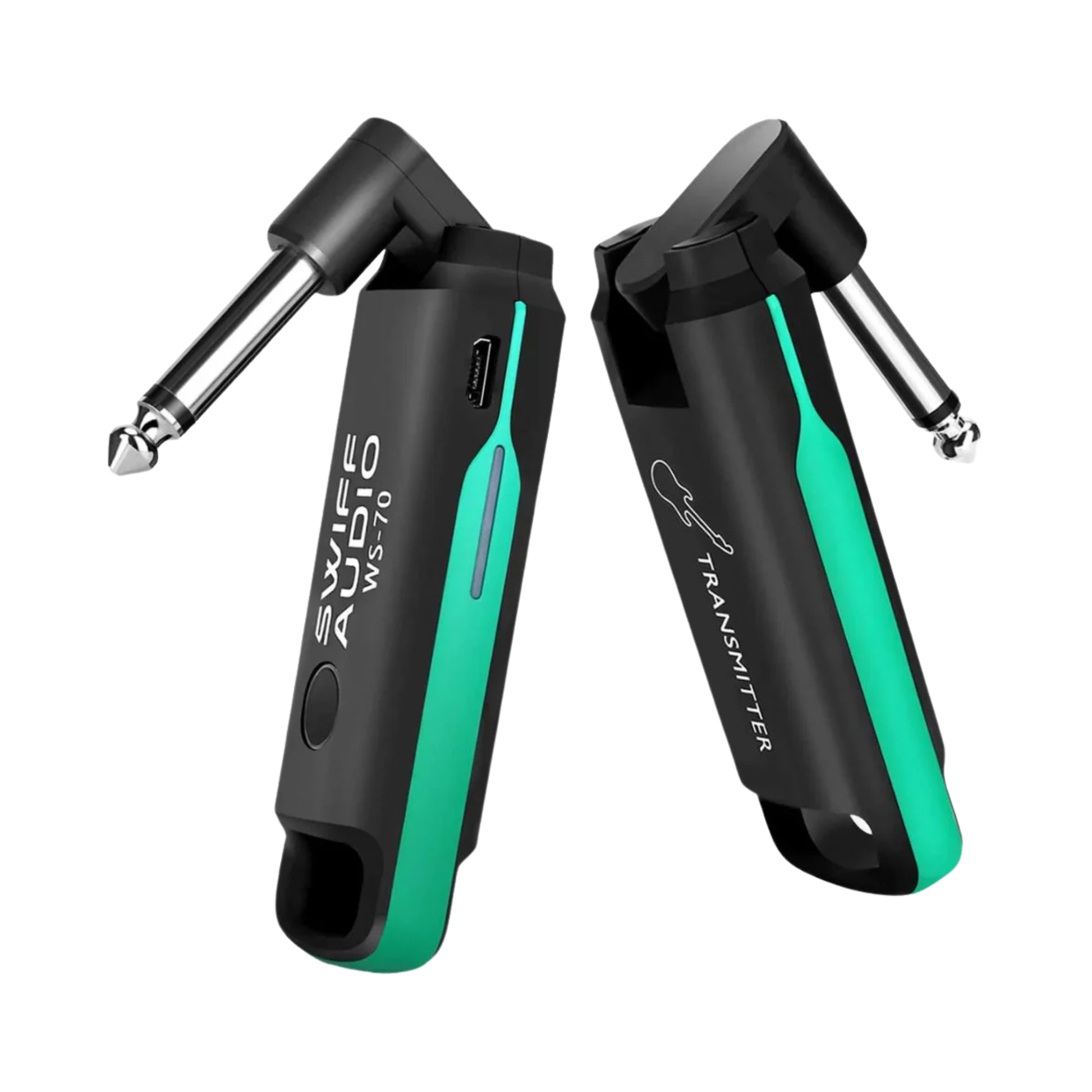 The Swiff Audio WS-70 is a compact UHF wireless system designed for guitars, basses, and any instrument with a 6.35 mm or 3.5 mm audio interface. With up to 10 selectable channels, a 30–50 m transmission range, and ultra-low latency under 2 ms, it combines reliability, clarity, and flexibility.